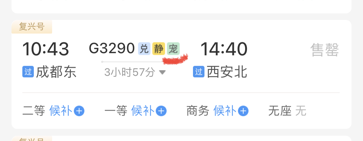 车次信息上有“宠”标代表可办理高铁宠物托运